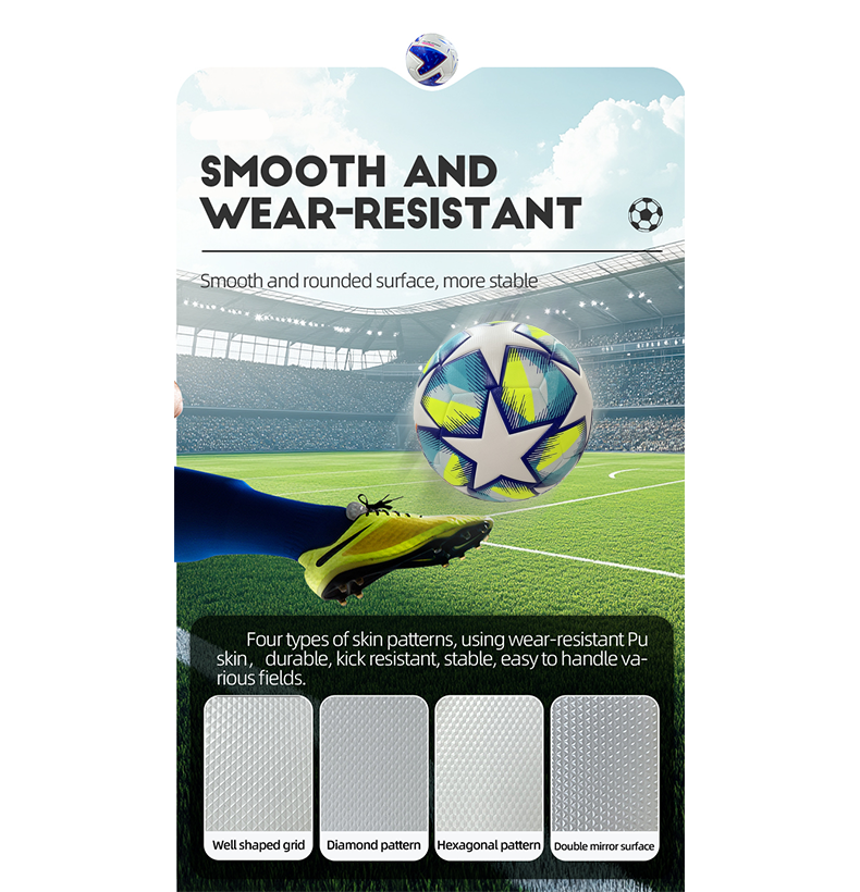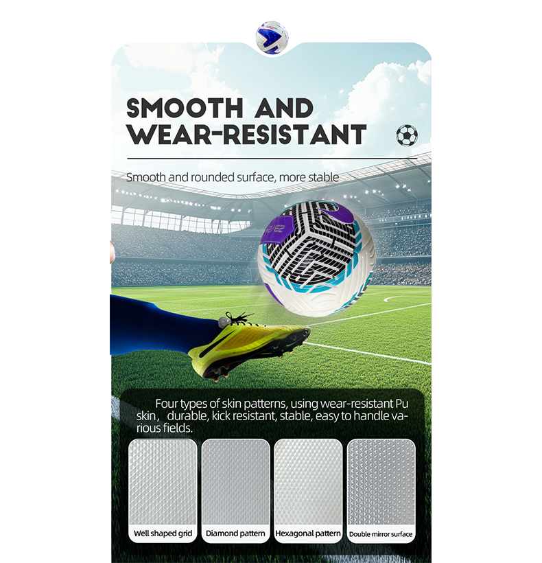 Surface Texture: 3D-structured, 6-panel design for improved grip, aerodynamics, and ball control.